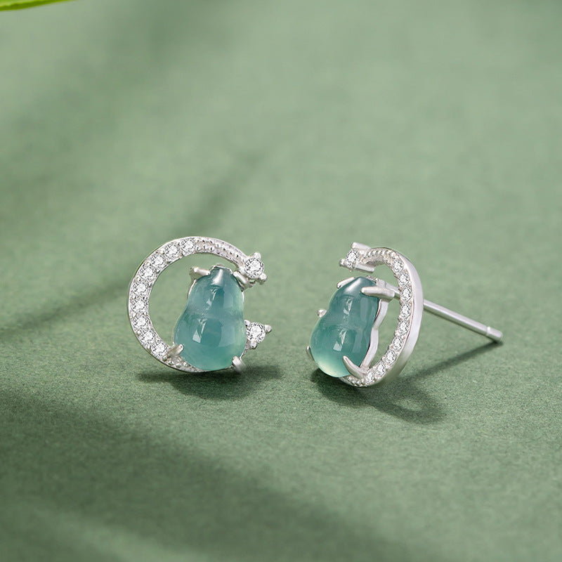 Natural Jade Earrings Jadeite Silver Hulu Earrings TUEG364