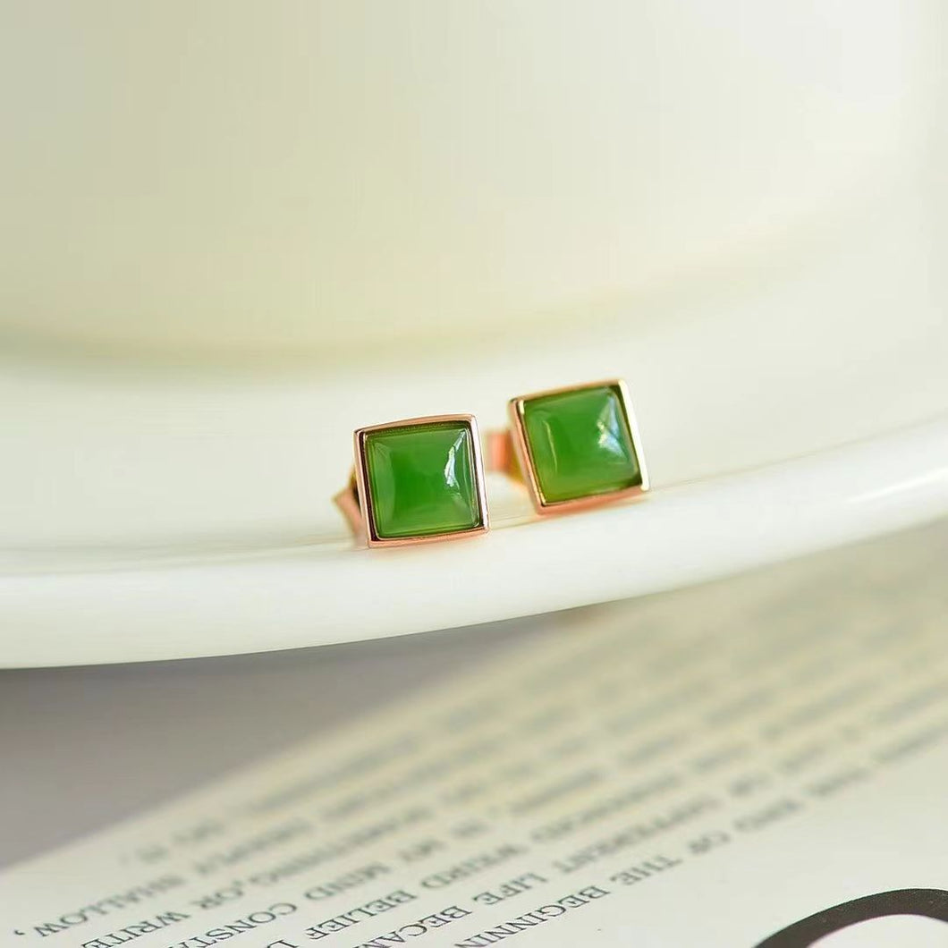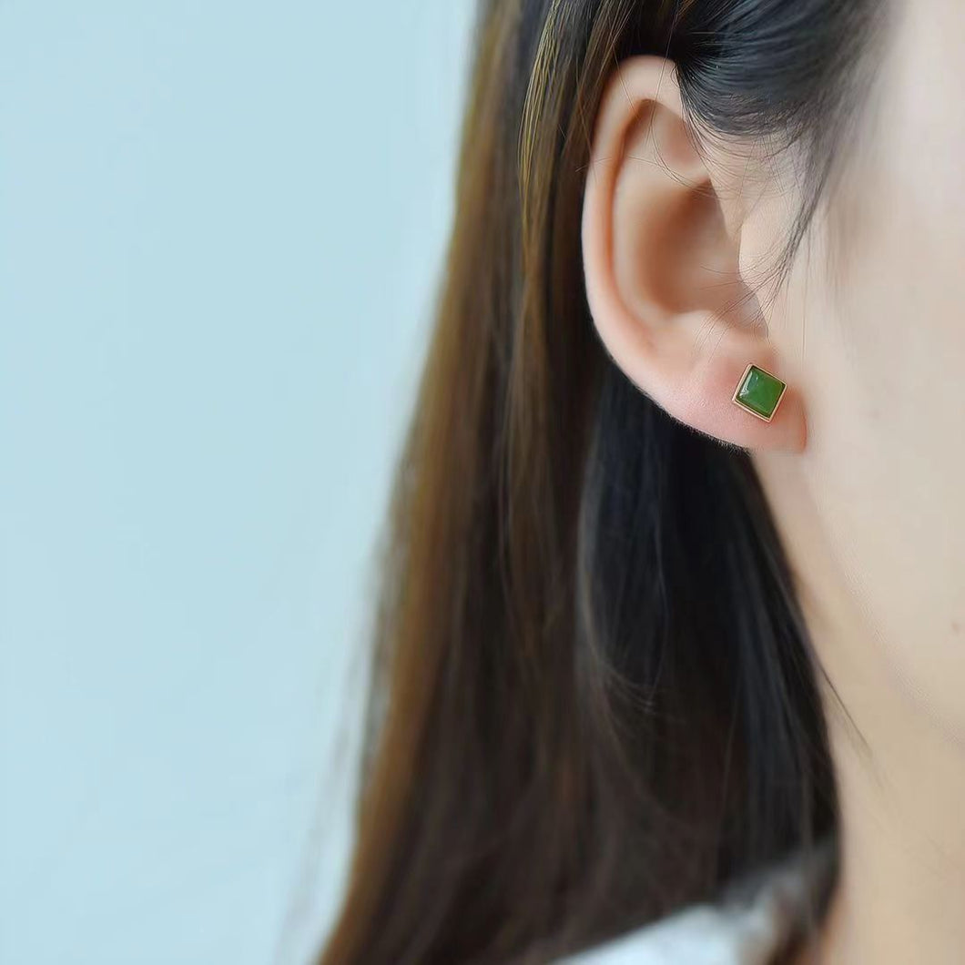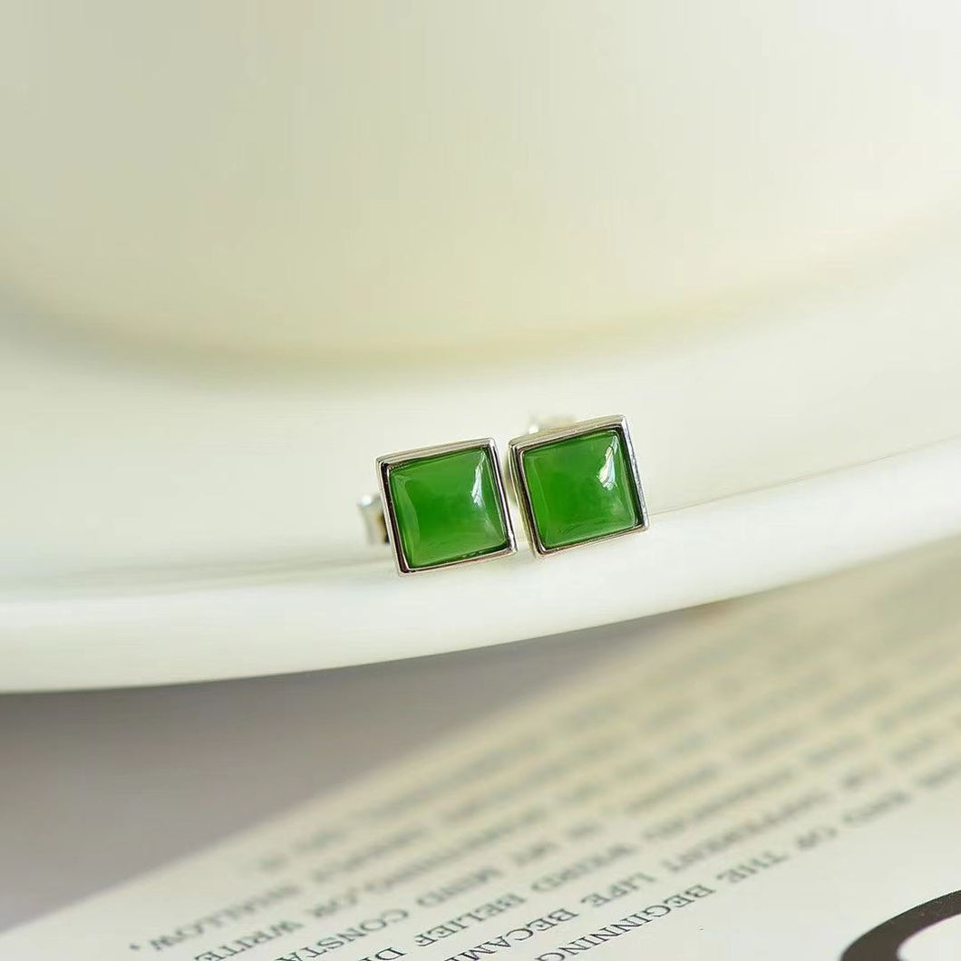 Natural Jade Earrings Nephrite Silver Earrings TUEG350