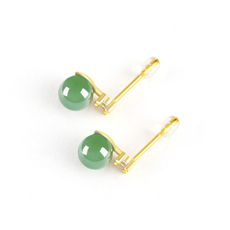 Natural Jade Earrings Nephrite Silver Earrings TUEG372