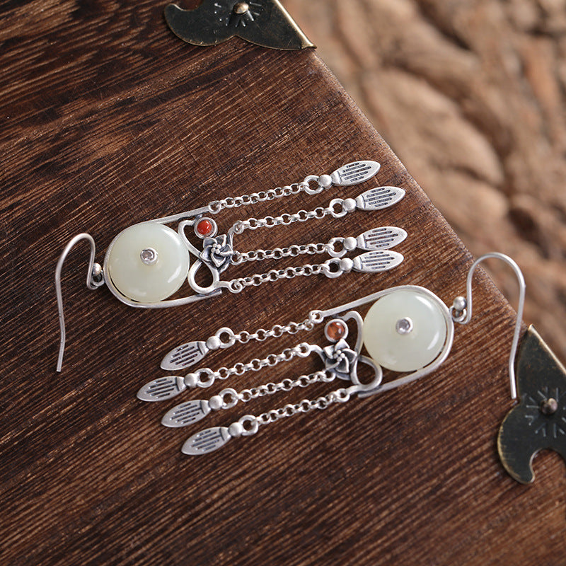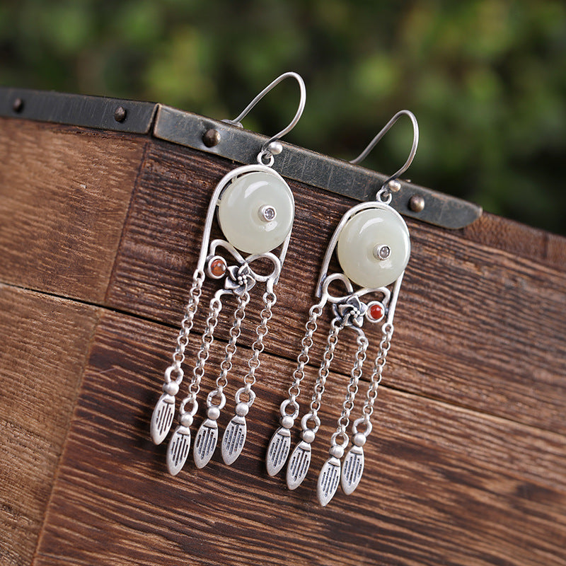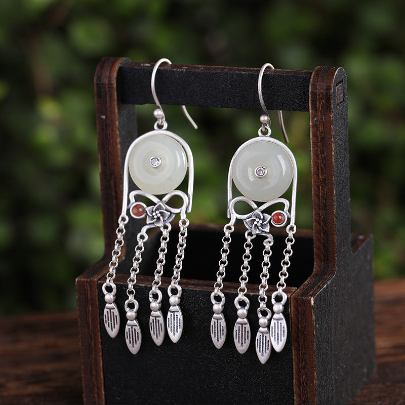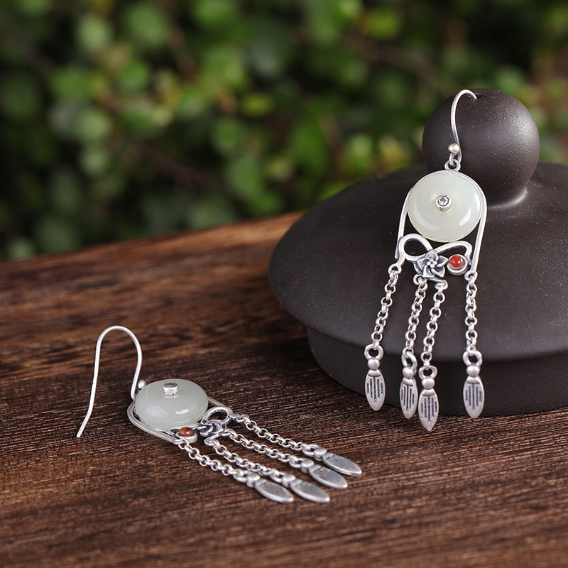 Natural Jade Earrings Nephrite Silver Earrings ZNE483