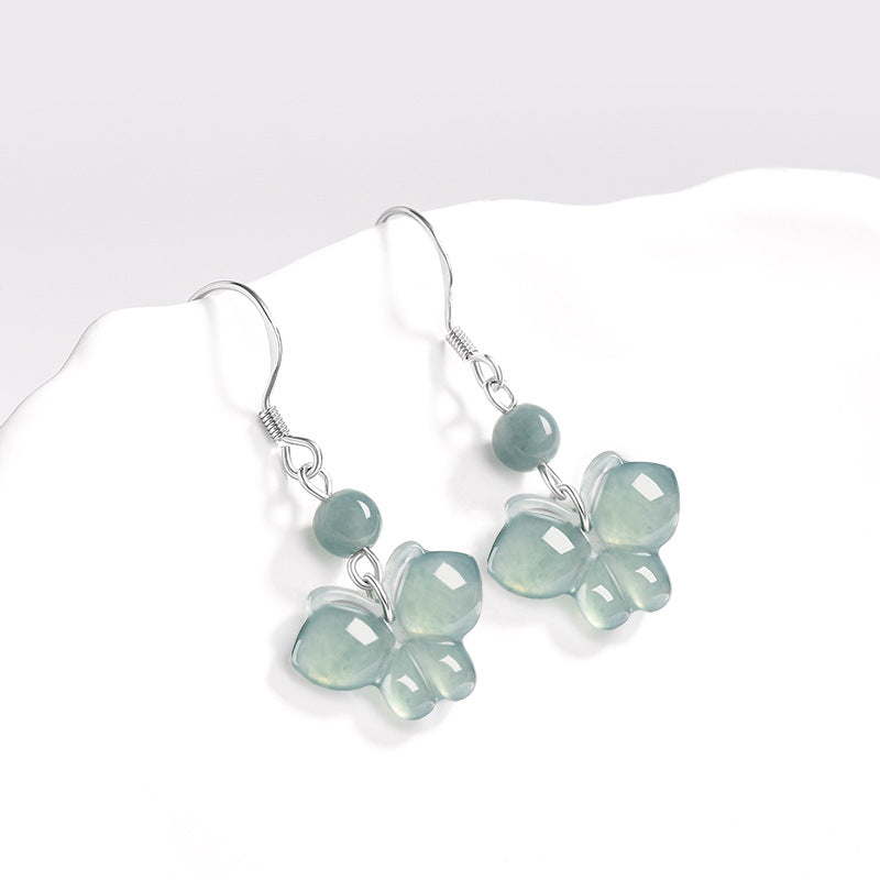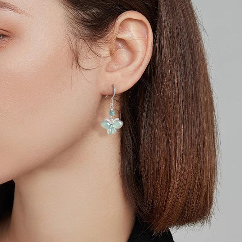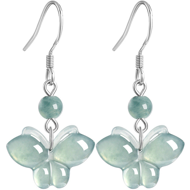 Natural Jade Earrings Silver Butterfly Jadeite Earrings TUEG427