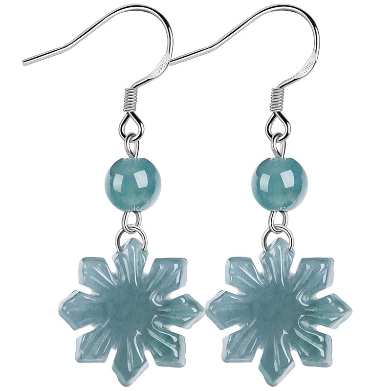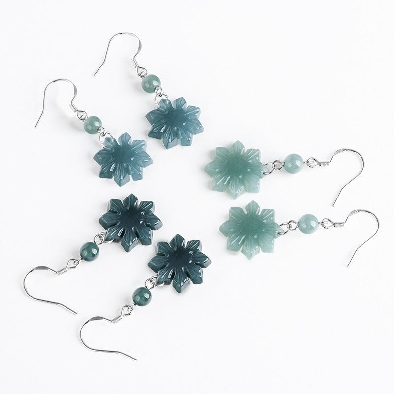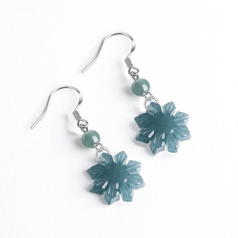 Natural Jade Earrings Silver Flower Jadeite Earrings TUEG379