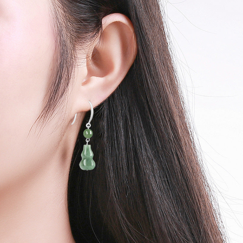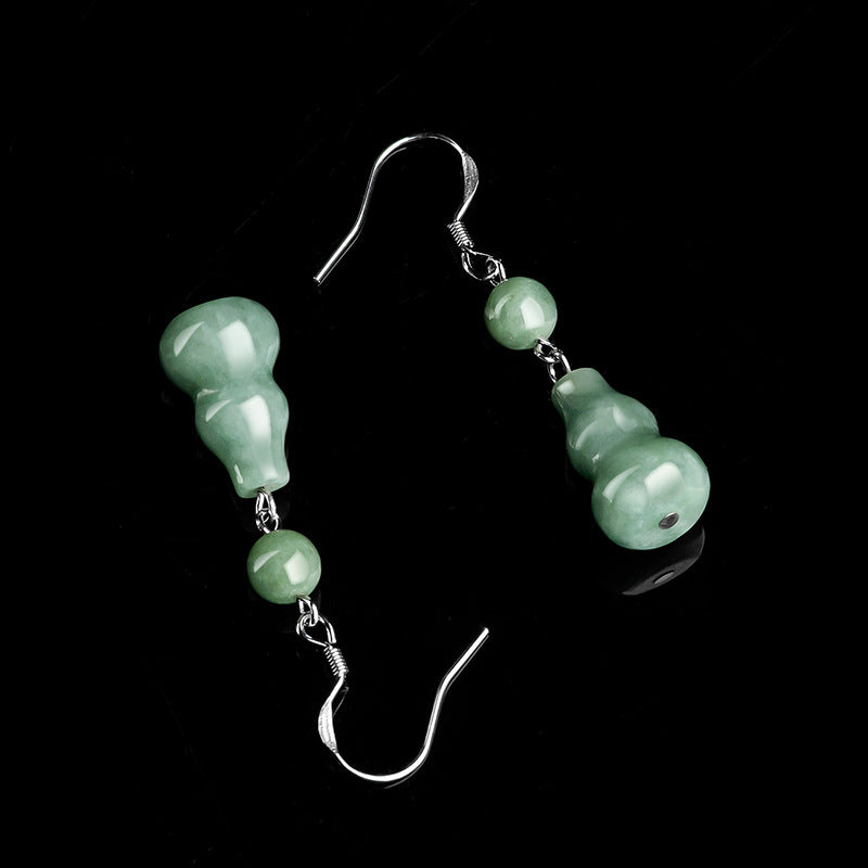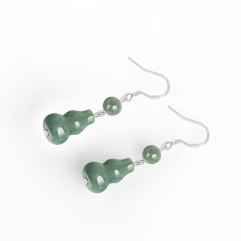 Natural Jade Earrings Silver Hulu Jadeite Earrings TUEG367