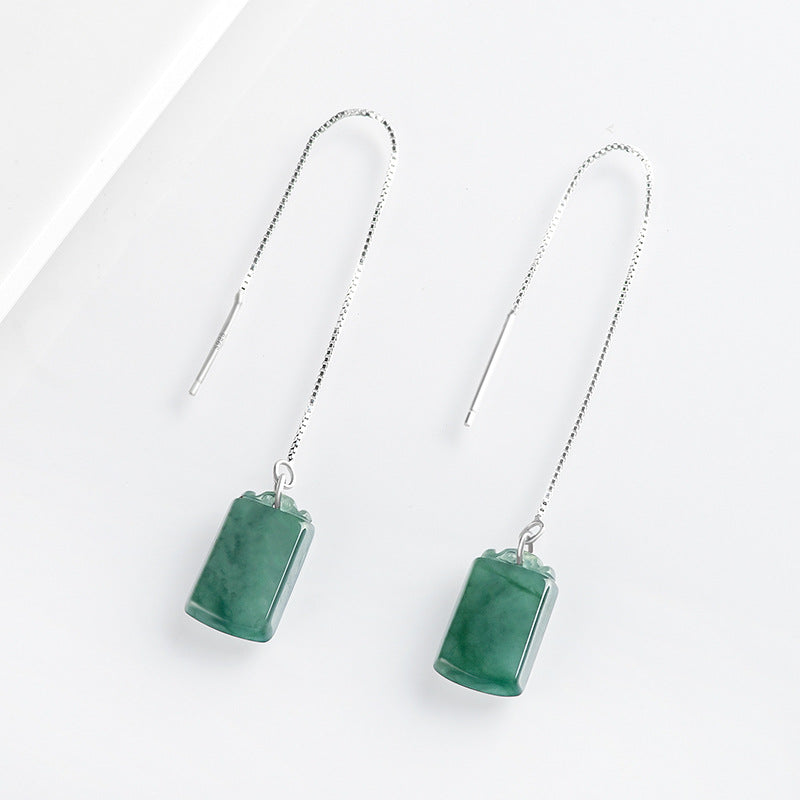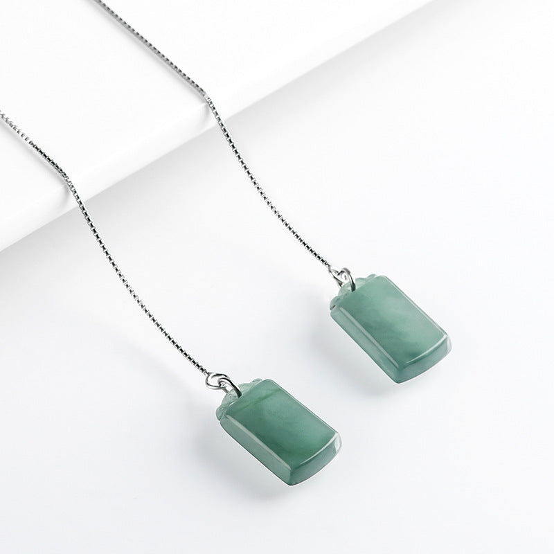 Natural Jade Earrings Silver Jadeite Earrings TUEG384