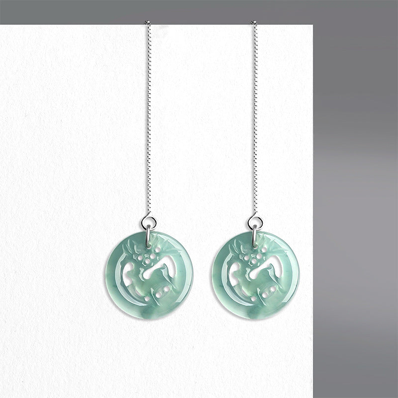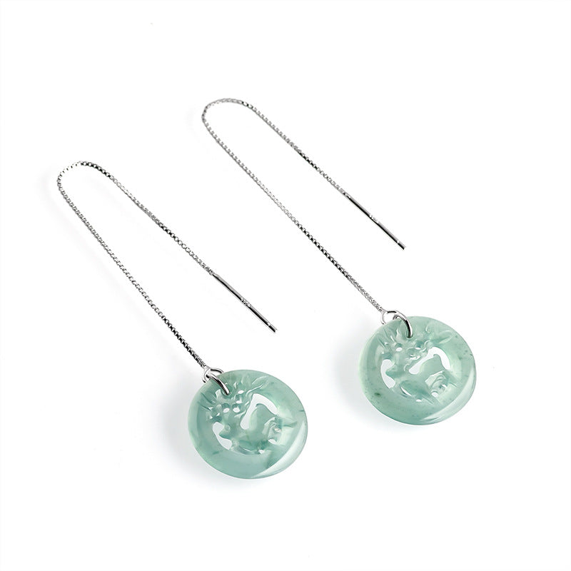 Natural Jade Earrings Silver Jadeite Earrings TUEG392