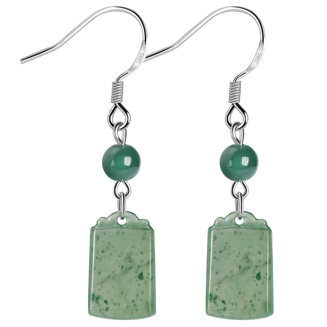 Natural Jade Earrings Silver Jadeite Earrings TUEG401