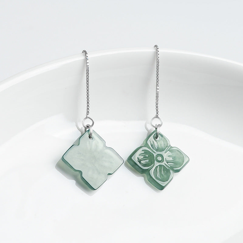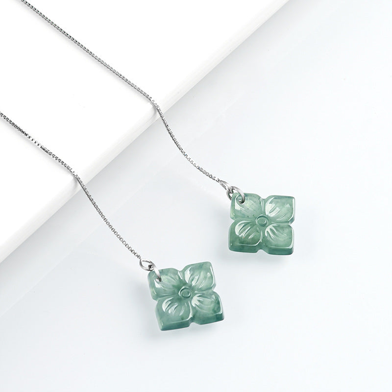 Natural Jade Earrings Silver Jadeite Earrings TUEG403