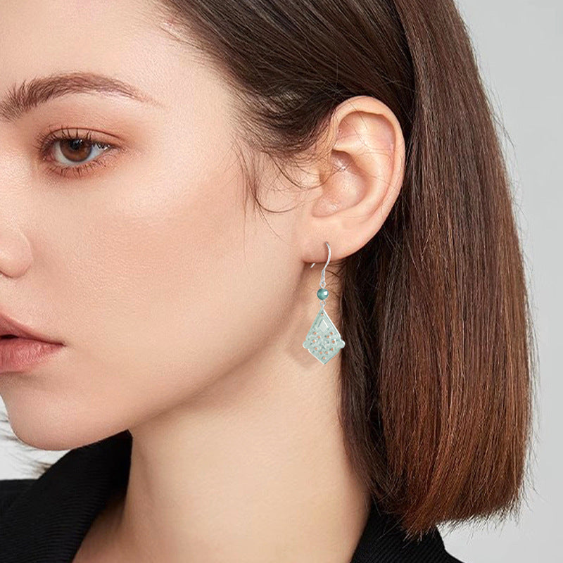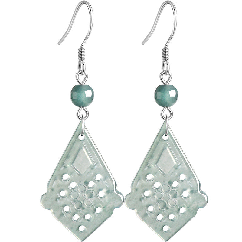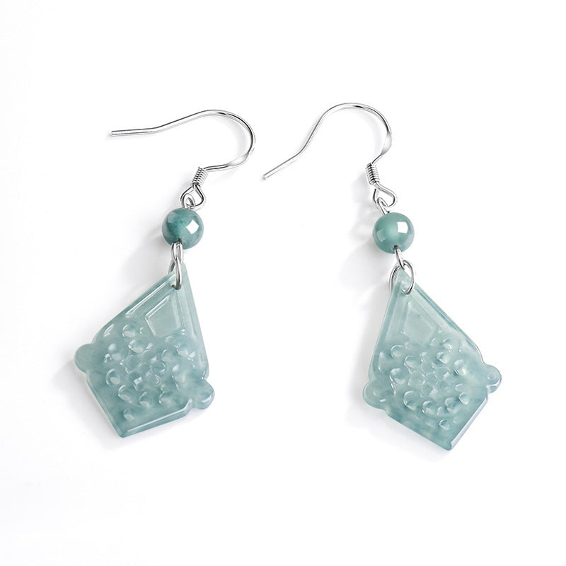 Natural Jade Earrings Silver Jadeite Earrings TUEG410