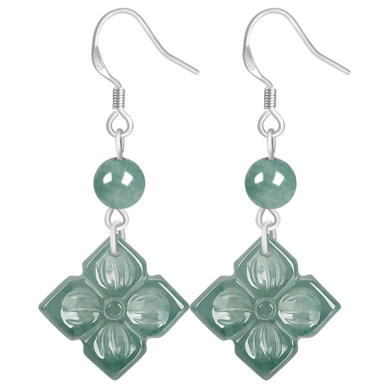 Natural Jade Earrings Silver Jadeite Earrings TUEG425