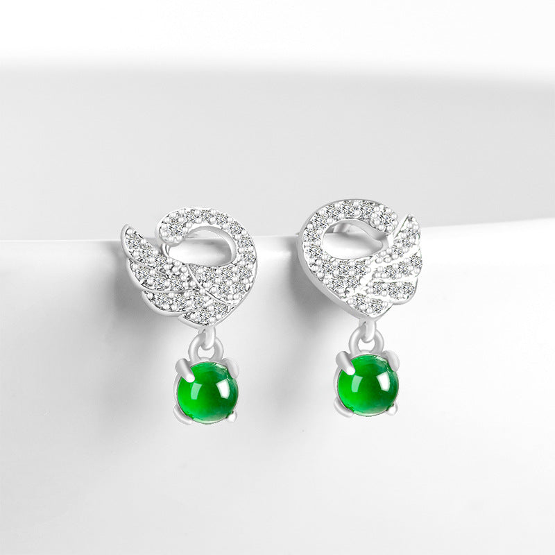 Natural Jade Earrings Silver Jadeite Earrings TUEG434