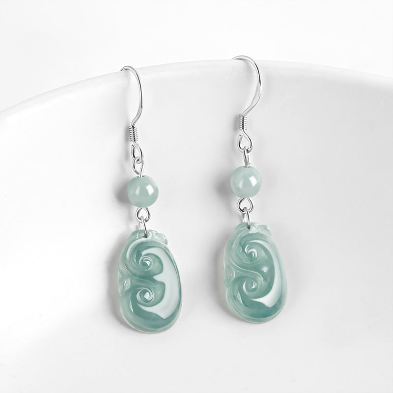 Natural Jade Earrings Silver Jadeite Earrings TUEG441