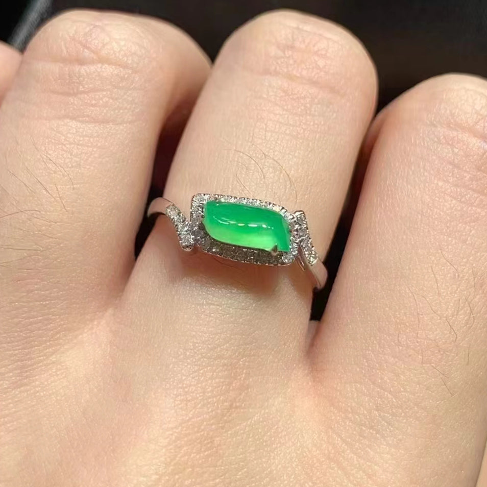 Natural Jade Engagement Ring Jadeite Gold Jade Wedding Ring TUEW368