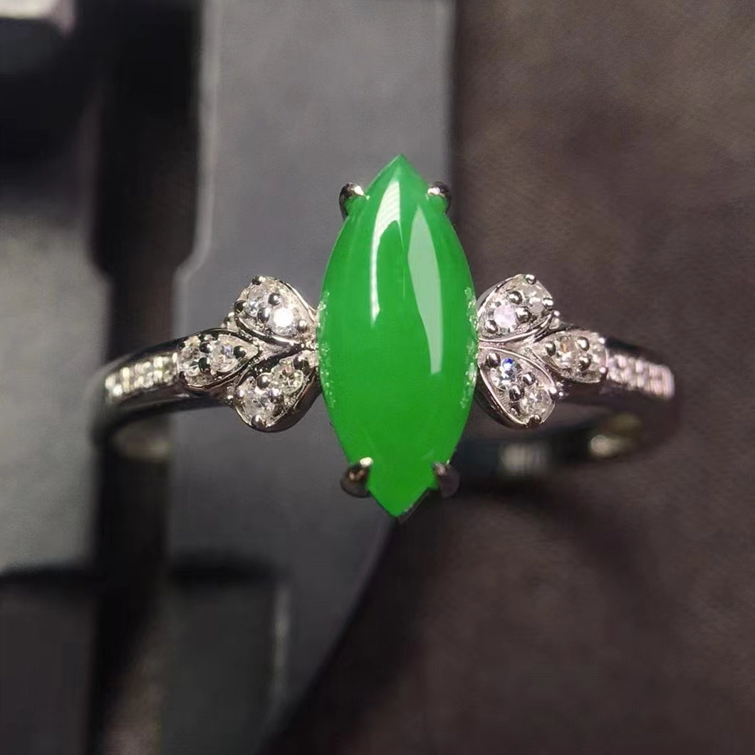 Natural Jade Engagement Ring Jadeite Gold Jade Wedding Ring TUEW383