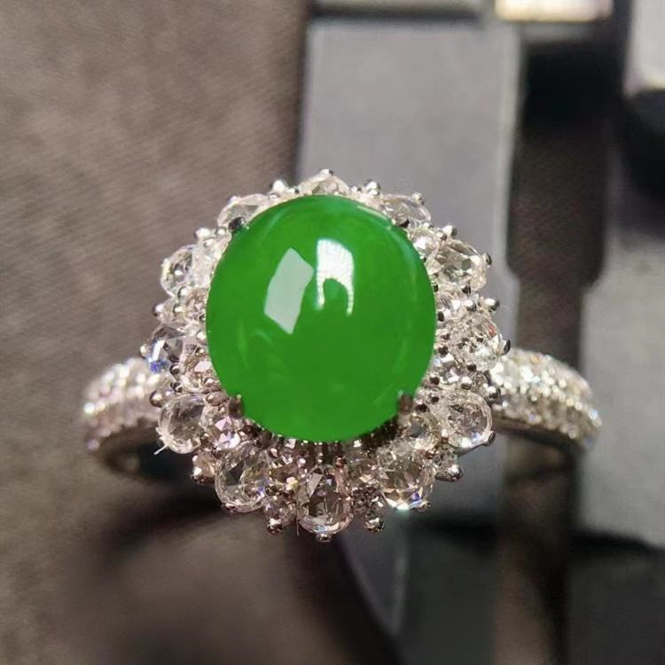 Natural Jade Engagement Ring Jadeite Gold Jade Wedding Ring TUEW393