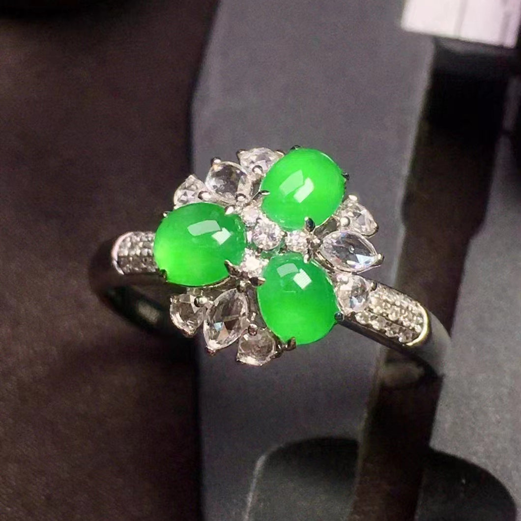 Natural Jade Engagement Ring Jadeite Gold Jade Wedding Ring TUEW395