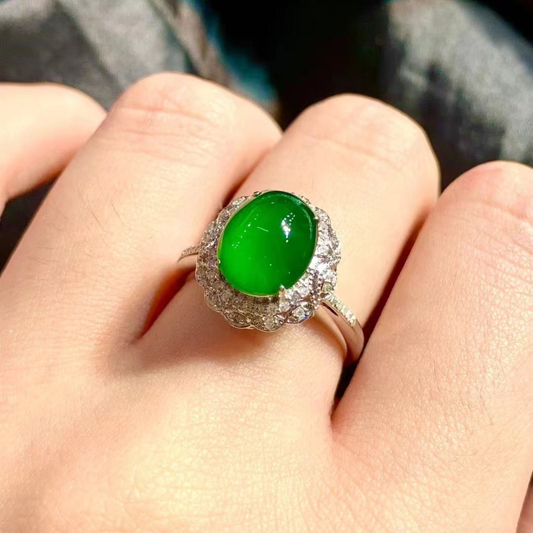 Natural Jade Engagement Ring Jadeite Gold Jade Wedding Ring