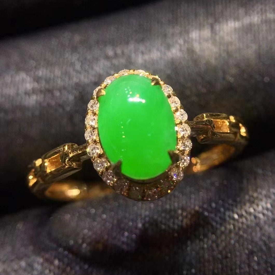 Natural Jade Engagement Ring Jadeite Gold Jade Wedding Ring TUEW416