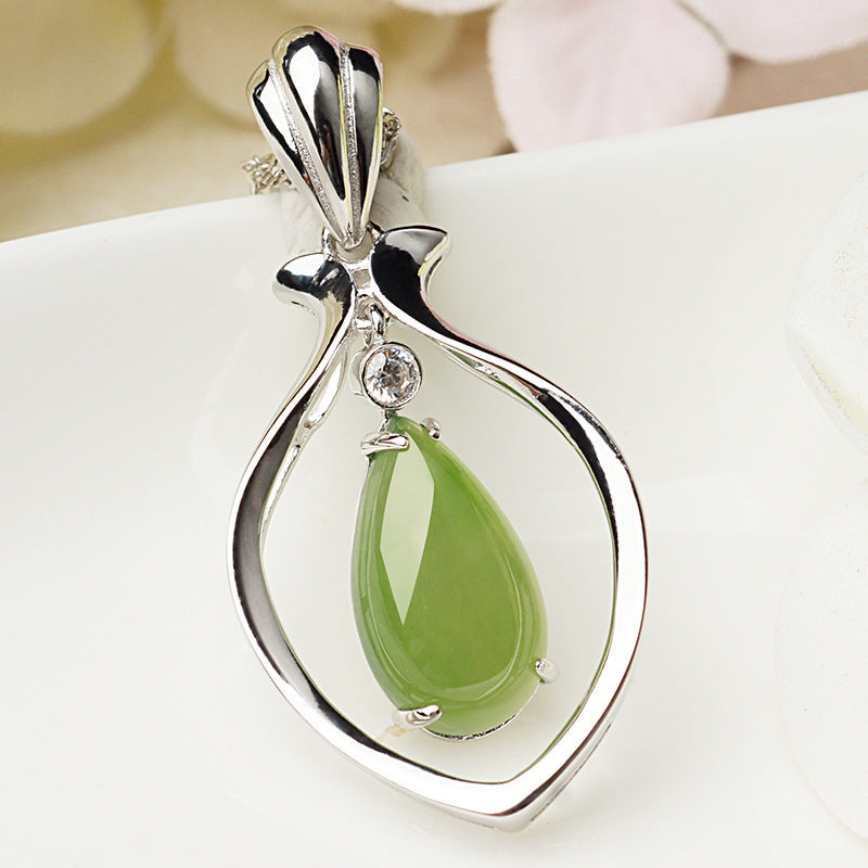 Natural Jade Pendant Nephrite Silver Zircon Pendant ZPT206