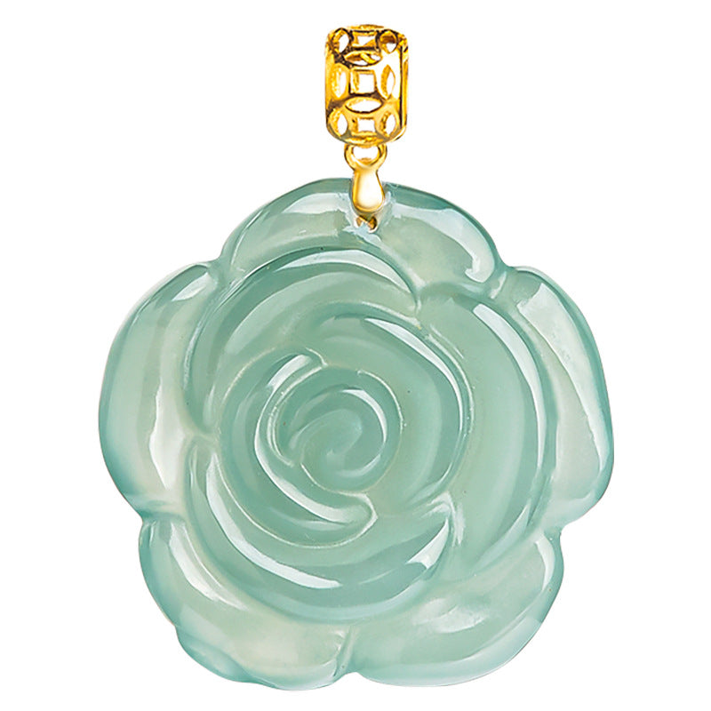 Natural Jade Pendant Silver Flower Jadeite Pendant TUPT562