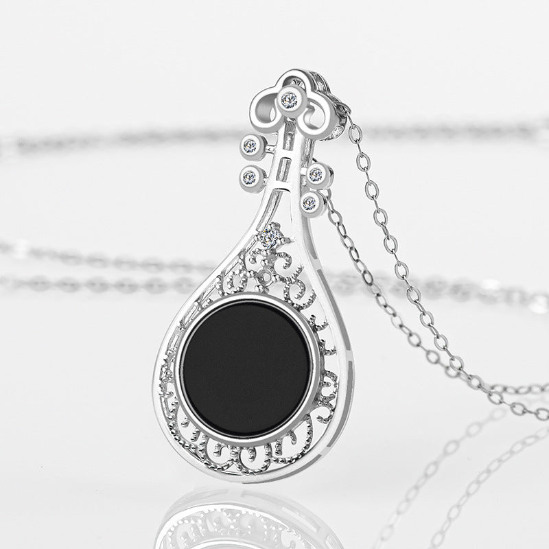 Natural Jade Pendant Silver Pipa Jadeite Pendant TUPT474