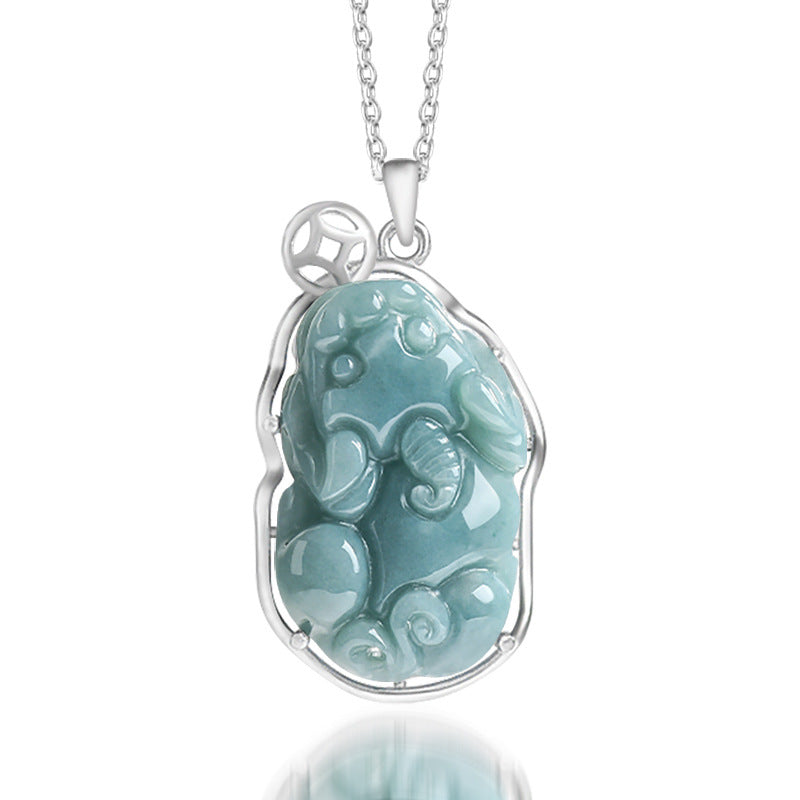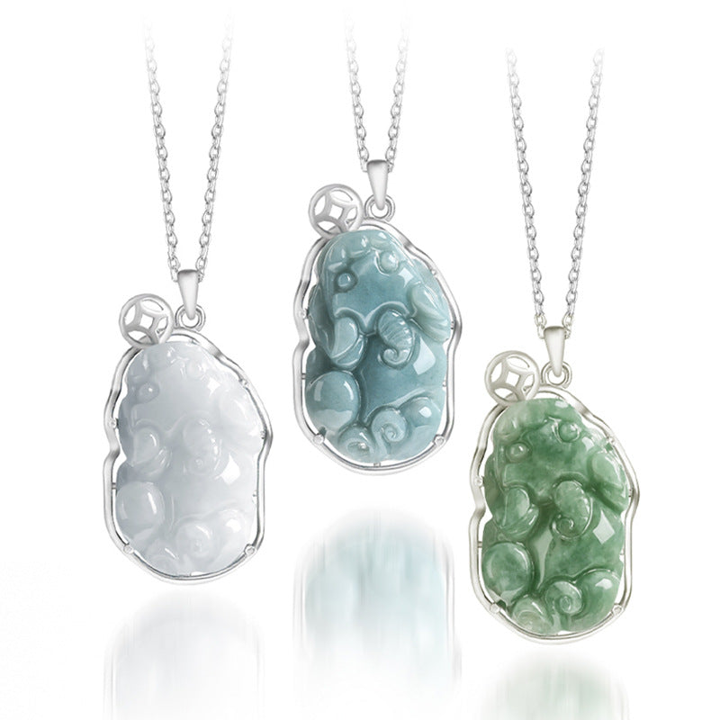 Natural Jade Pendant Silver Pixiu Jadeite Pendant TUPT477