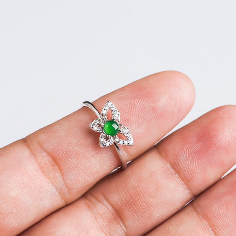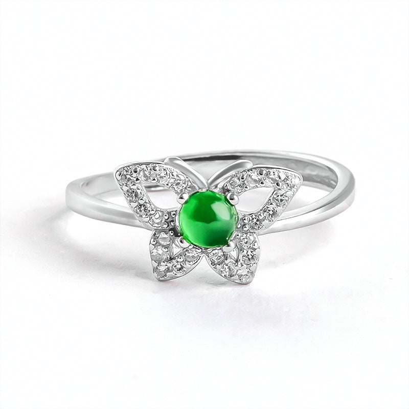Natural Jade Ring Adjustable Butterfly Silver Jadeite Ring TURG380