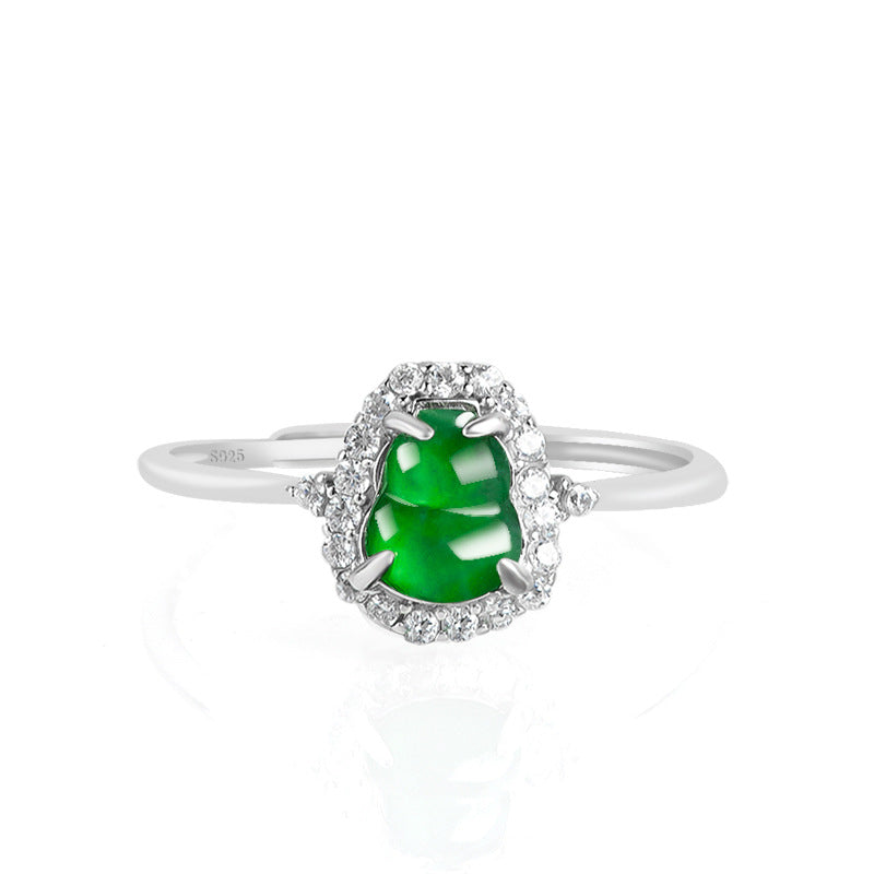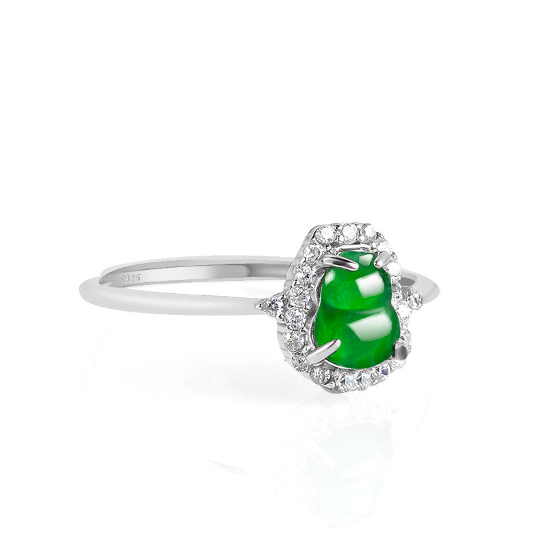 Natural Jade Ring Adjustable Silver Hulu Jadeite Ring TURG411