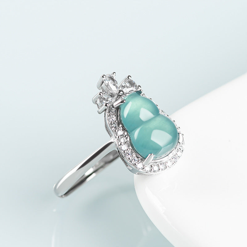 Natural Jade Ring Adjustable Silver Hulu Jadeite Ring TURG418