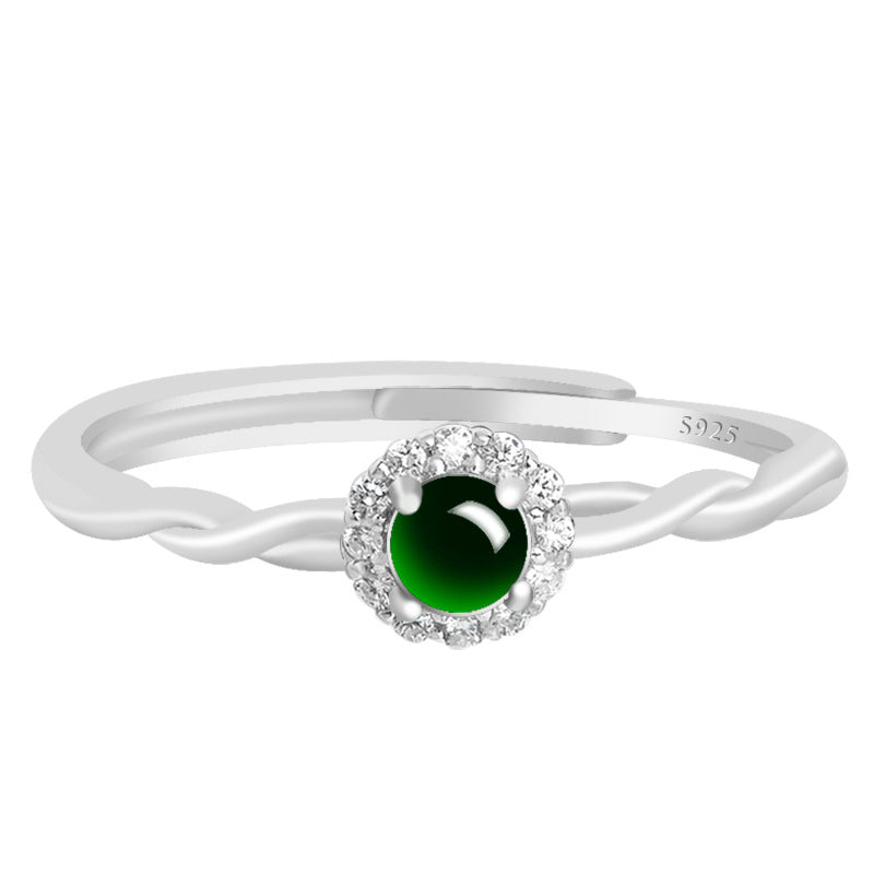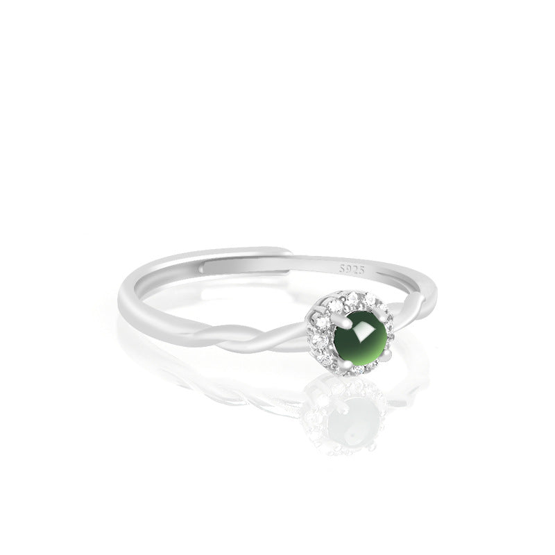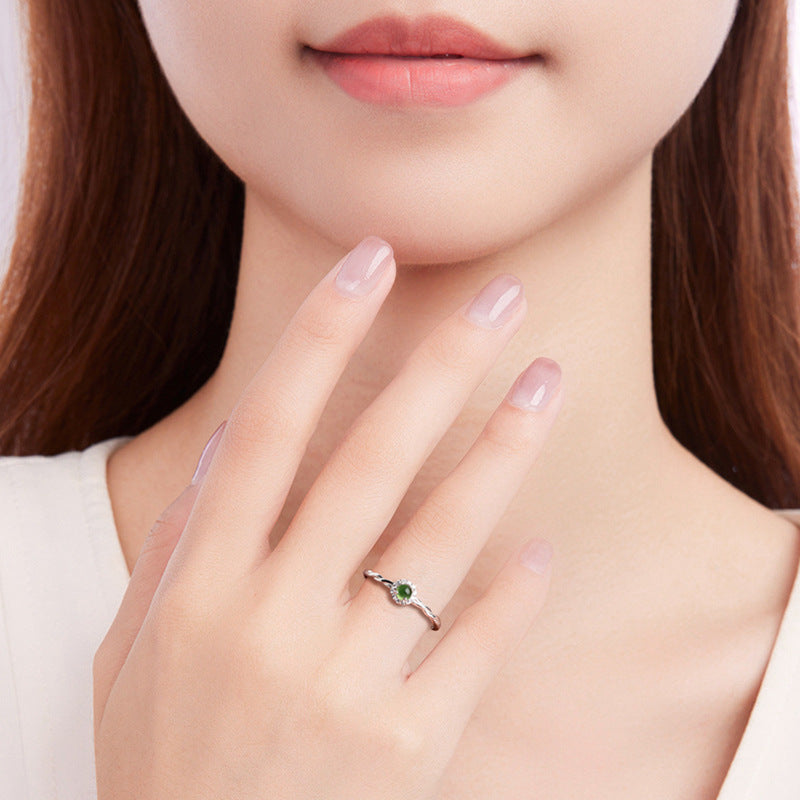 Natural Jade Ring Adjustable Silver Jadeite Ring TURG357