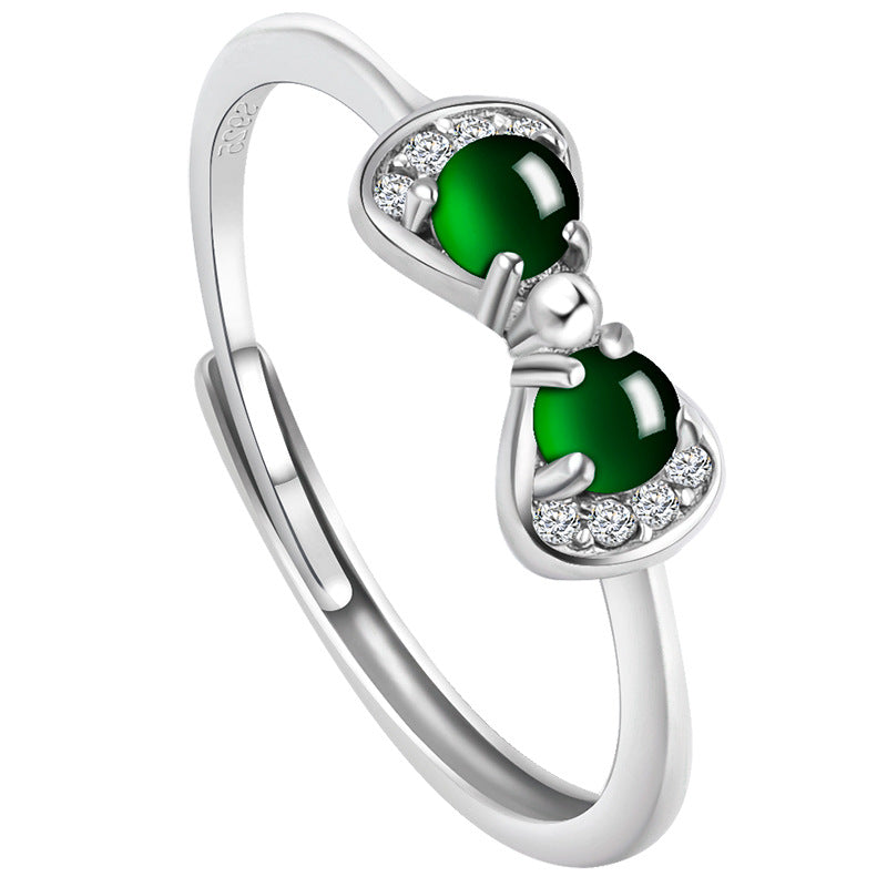 Natural Jade Ring Adjustable Silver Jadeite Ring TURG361