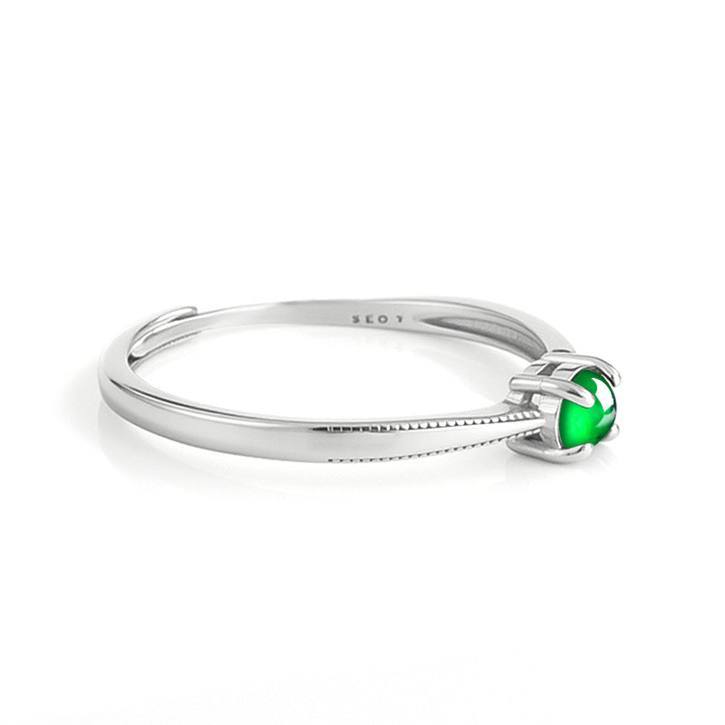 Natural Jade Ring Adjustable Silver Jadeite Ring TURG363