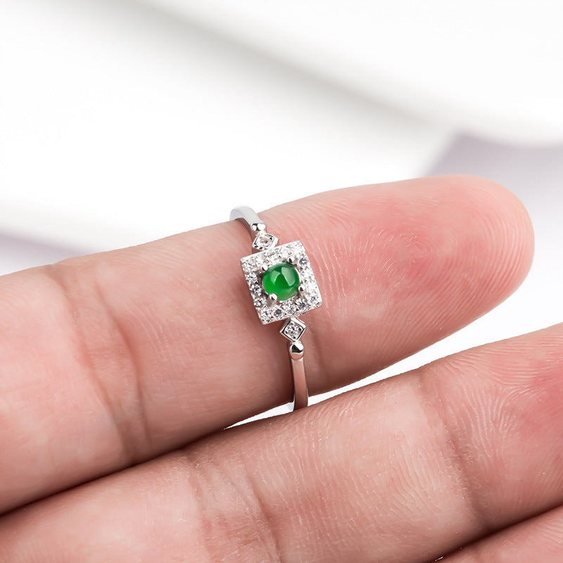 Natural Jade Ring Adjustable Silver Jadeite Ring TURG381