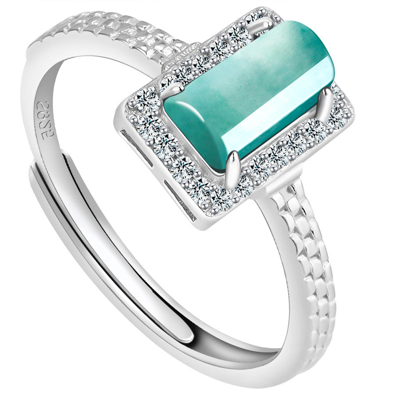 Natural Jade Ring Adjustable Silver Jadeite Ring TURG403