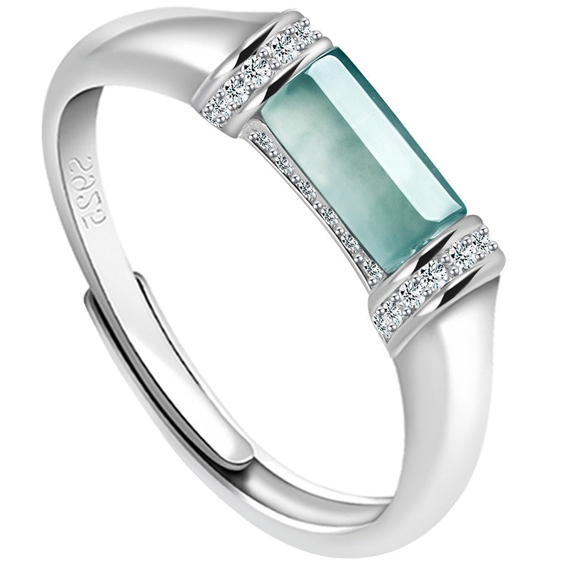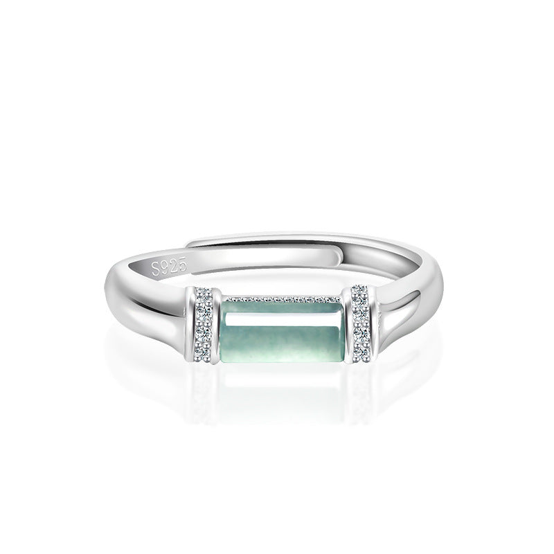 Natural Jade Ring Adjustable Silver Jadeite Ring