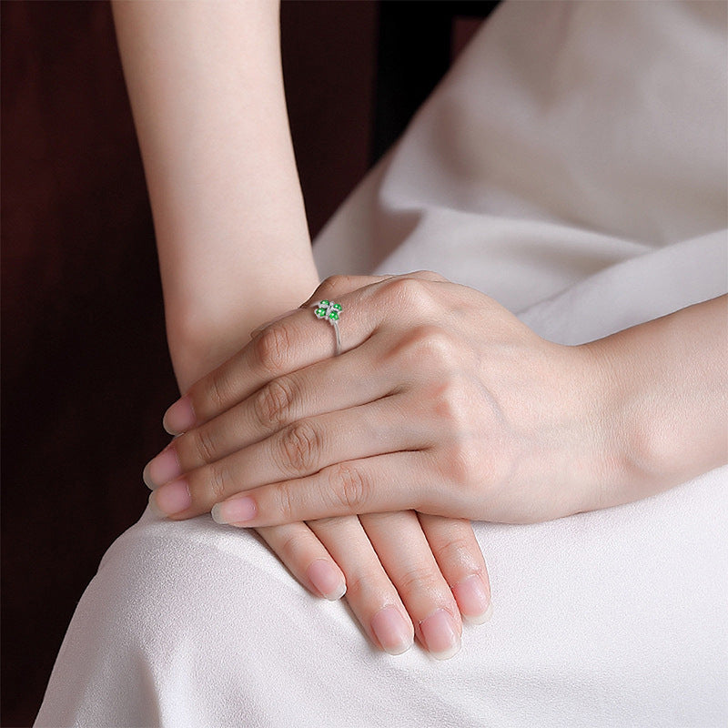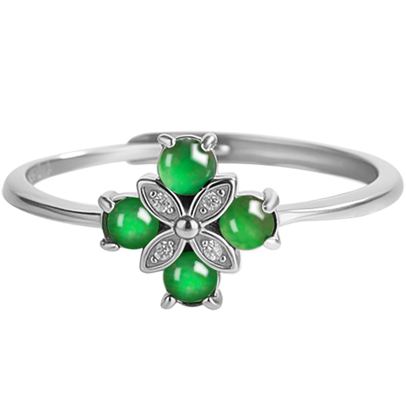 Natural Jade Ring Adjustable Silver Jadeite Ring TURG419