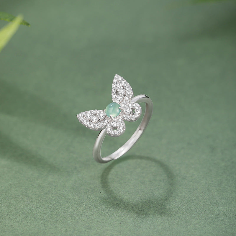 Natural Jade Ring Jadeite Silver Butterfly Adjustable Ring TURG343