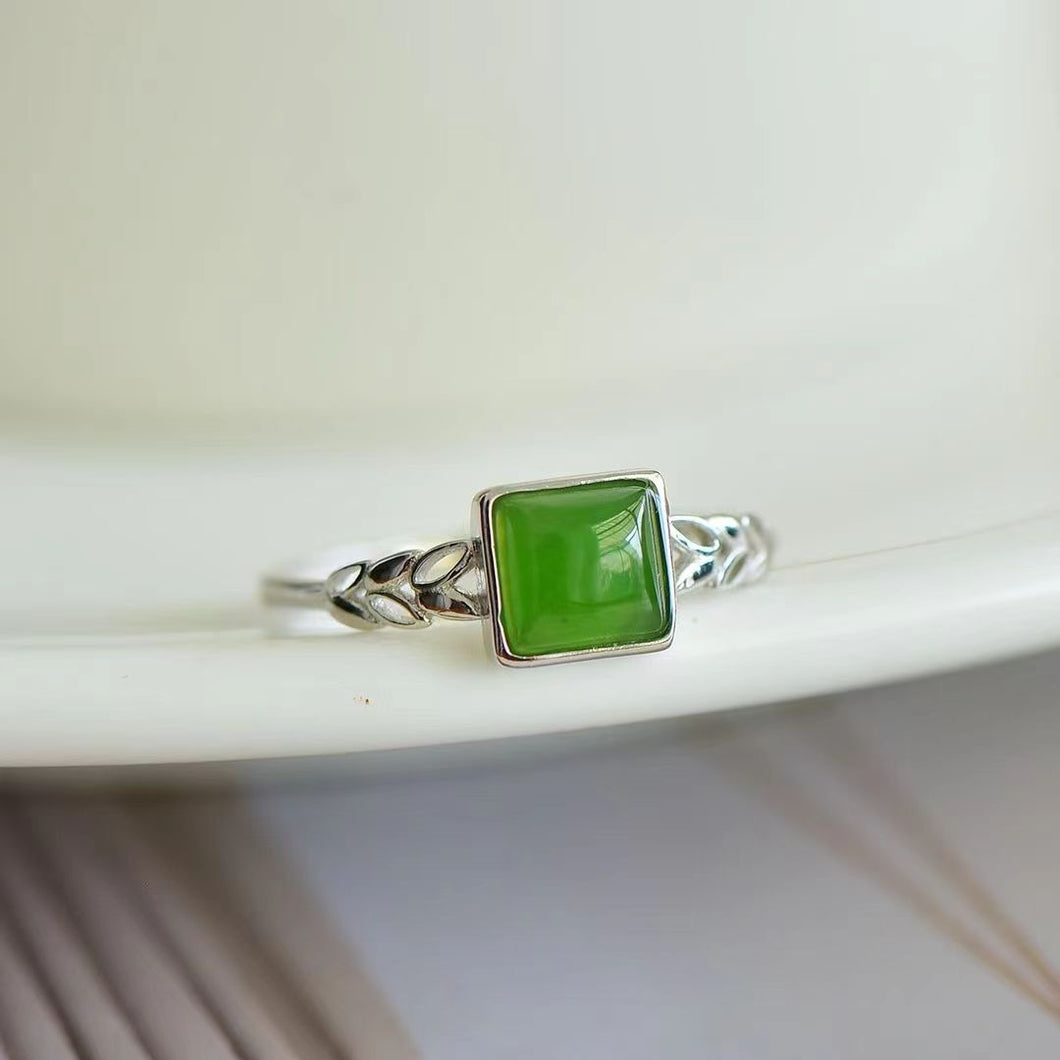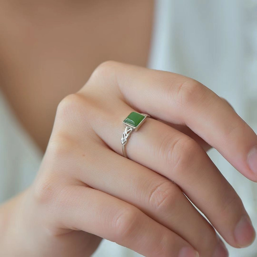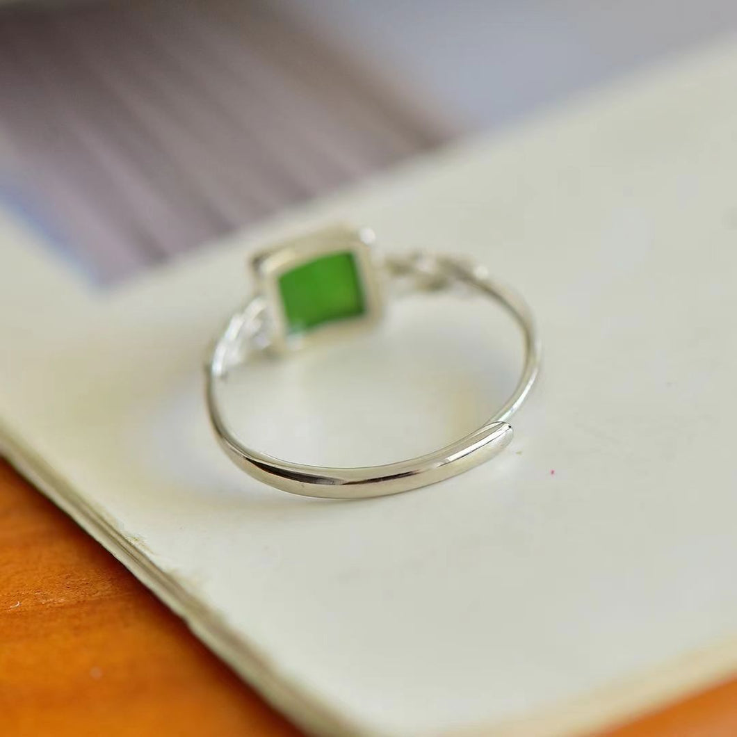 Natural Jade Ring Nephrite Silver Adjustable Ring TURG337
