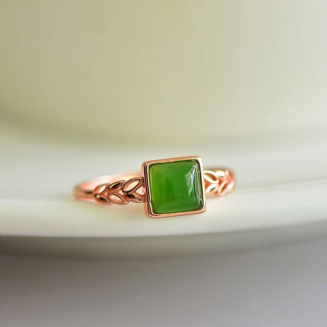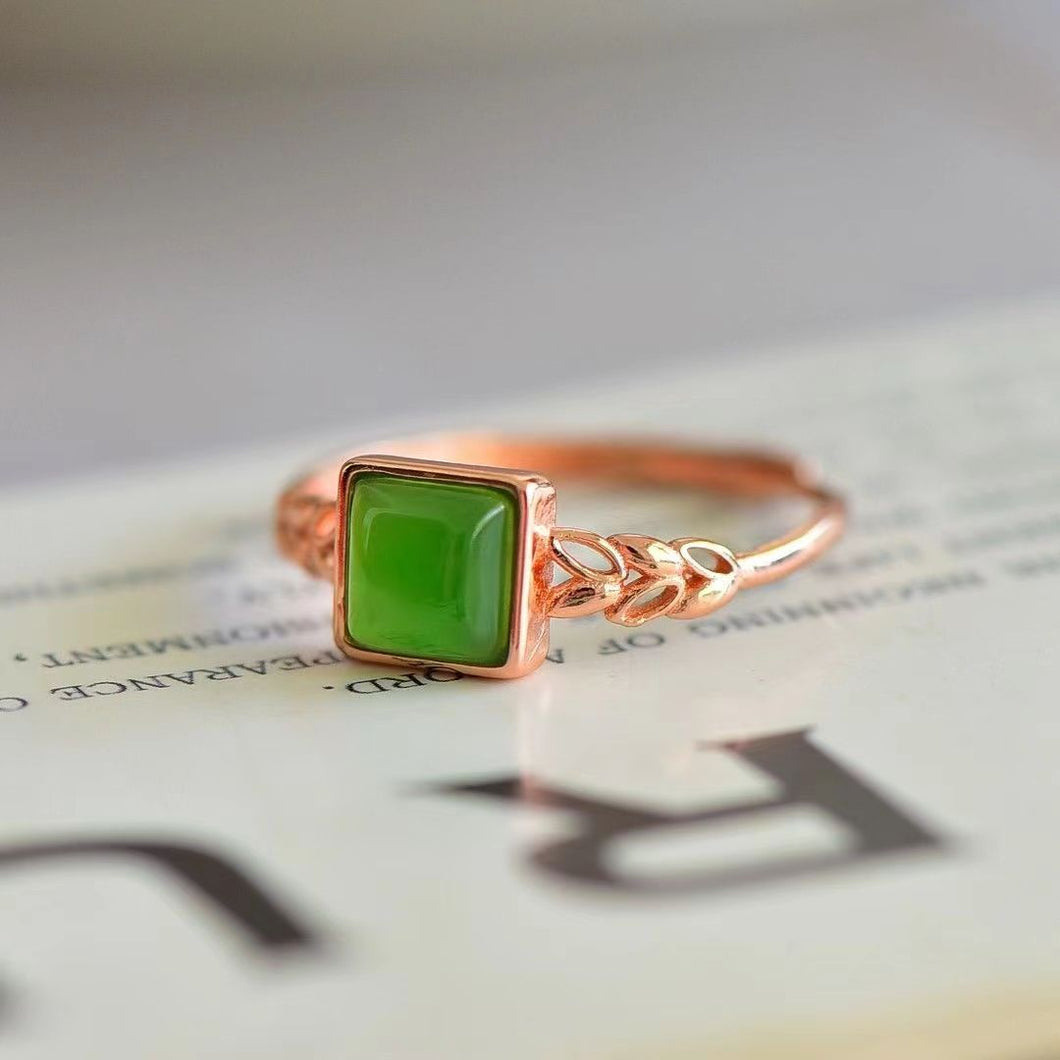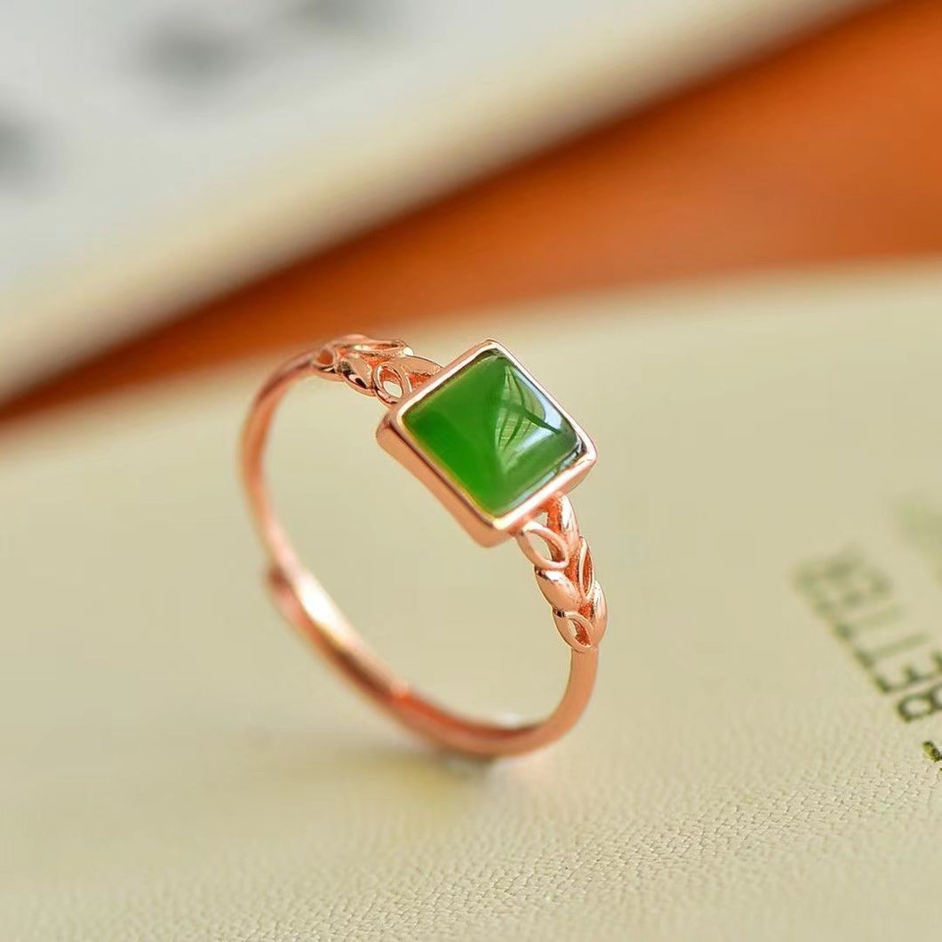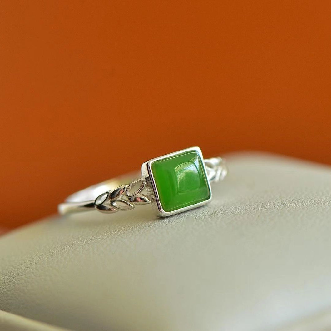 Natural Jade Ring Nephrite Silver Adjustable Ring TURG337