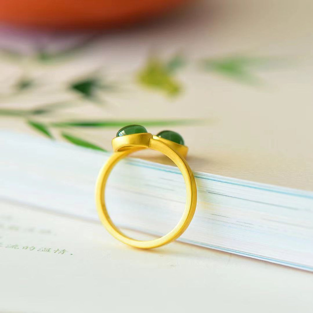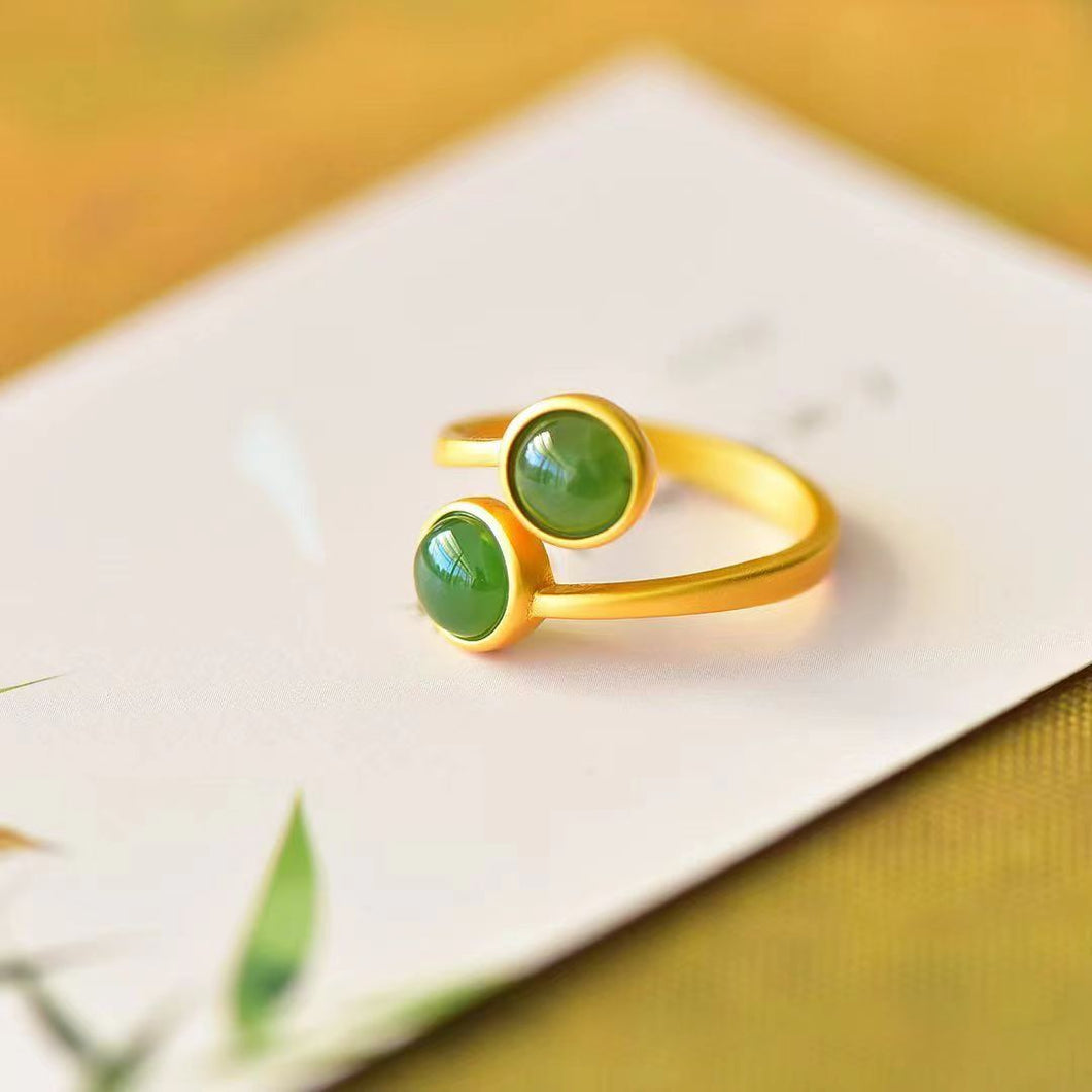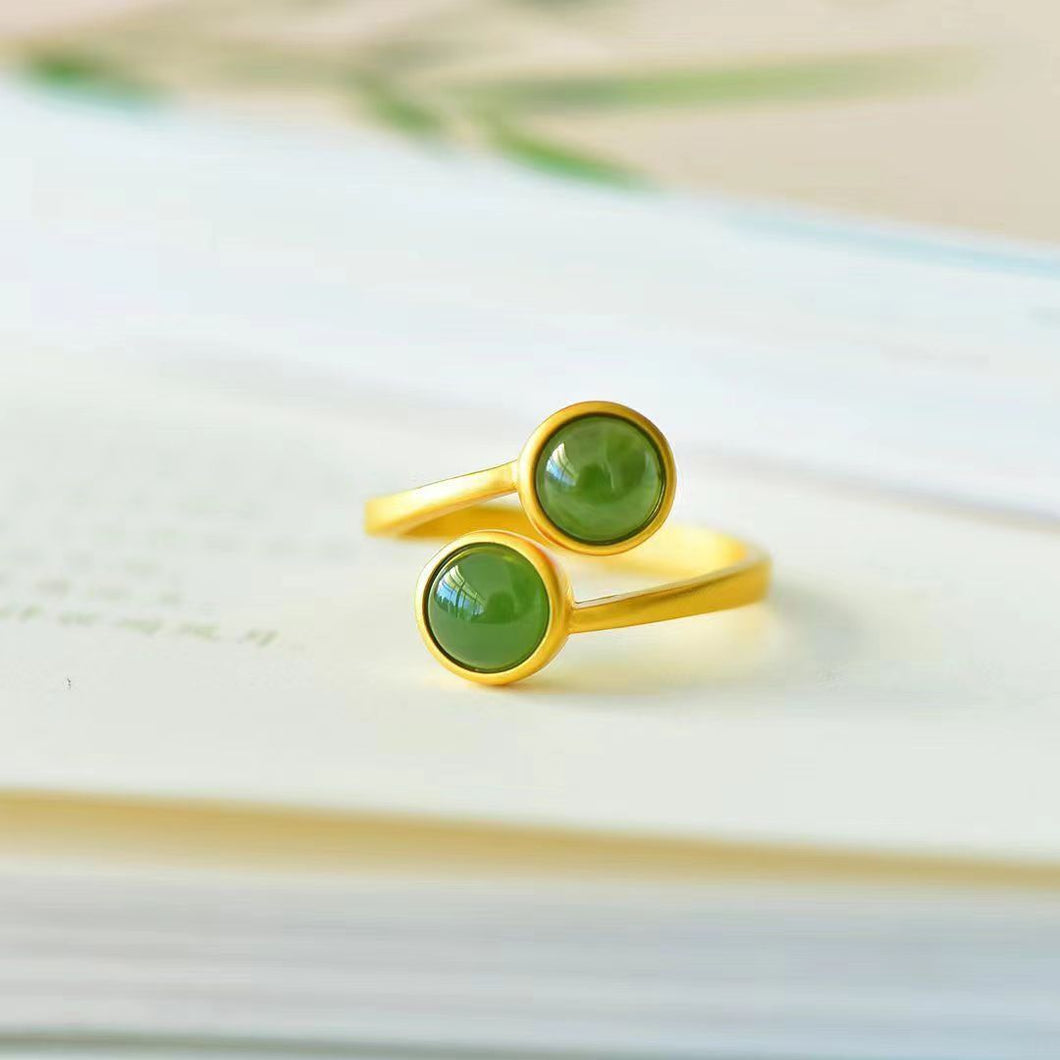 Natural Jade Ring Nephrite Silver Adjustable Ring
