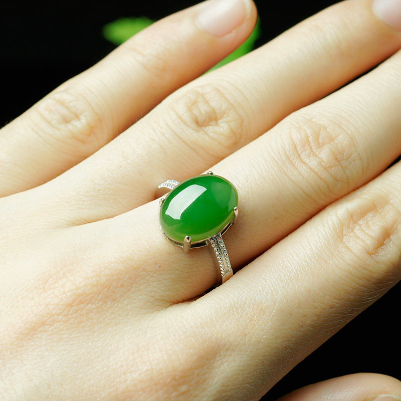 Natural Jade Ring Nephrite Silver Zircon Adjustable Ring ZNRG122