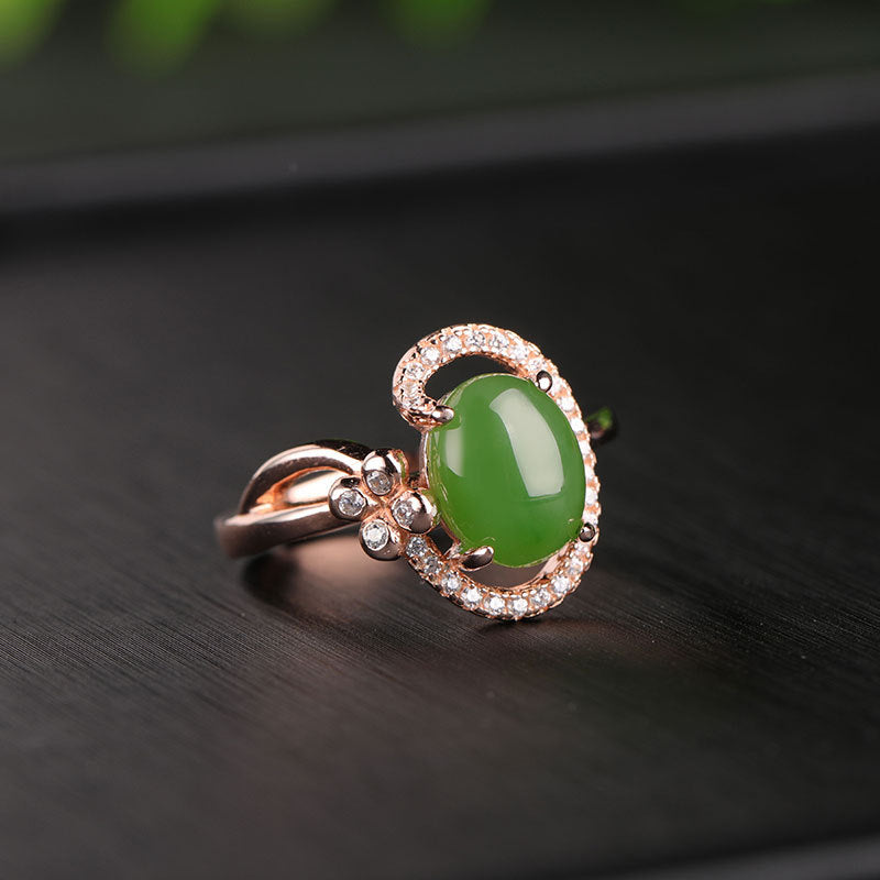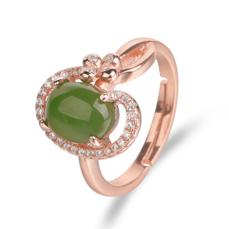 Natural Jade Ring Nephrite Silver Zircon Adjustable Ring