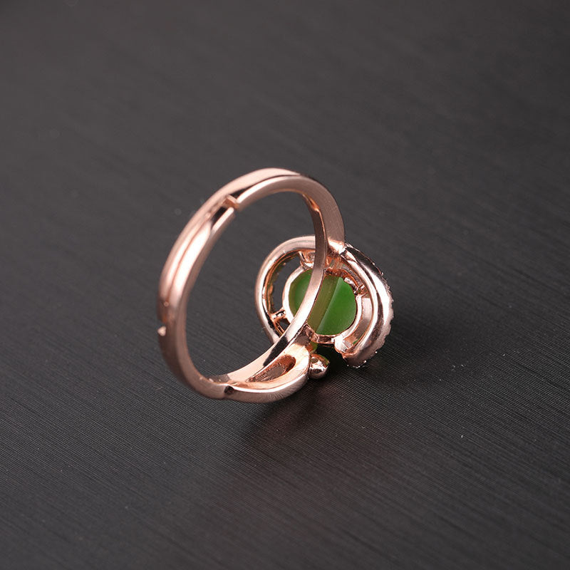 Natural Jade Ring Nephrite Silver Zircon Adjustable Ring ZNRG130